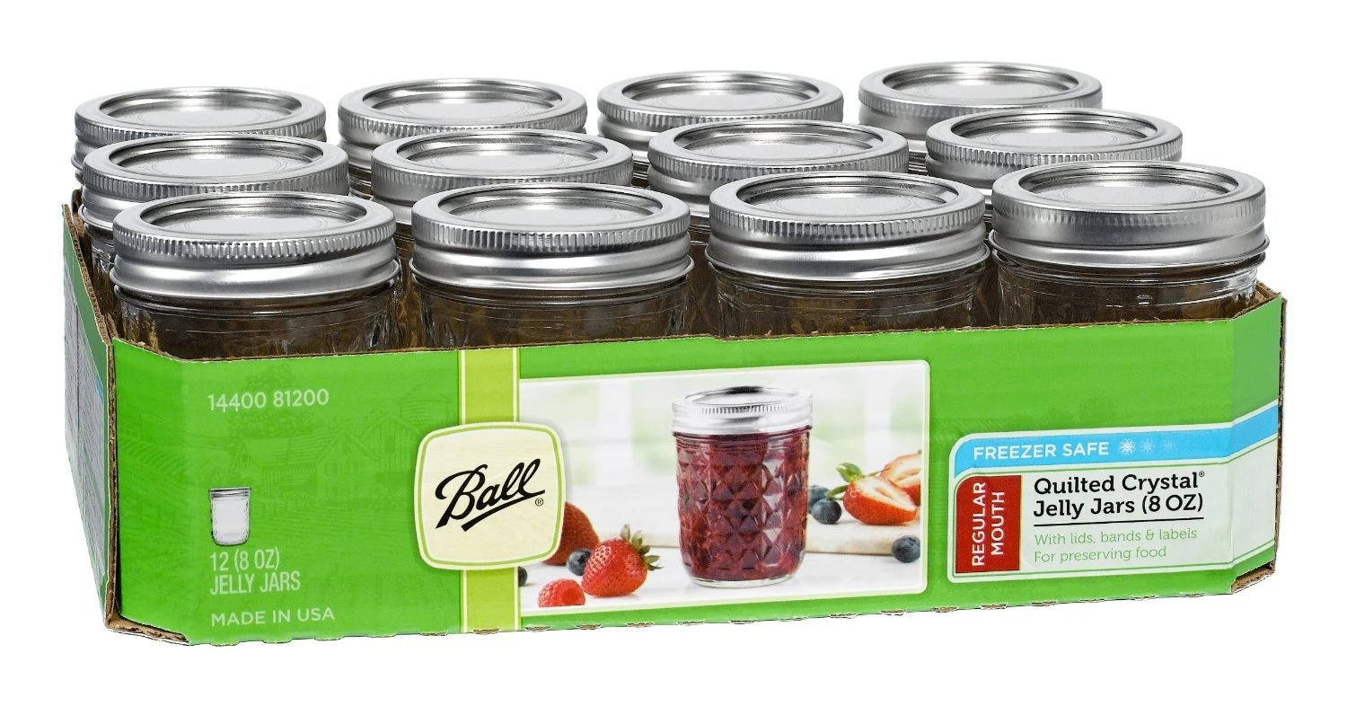 Ball® Regular Mouth (8-oz.) Quilted Crystal Jelly Jars are ideal for fresh preserving recipes such as jams, jellies, sauces, mustards and flavored vinegars.