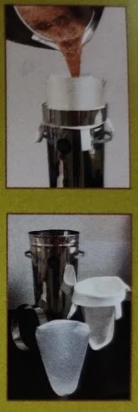 Nest or place several Cone Pre-Filters inside the other with the opening of each Cone Pre-Filter facing upward. Place all the nested Cone Pre-Filters inside your main Orlon Filter Bag . Again, the opening of all filters should be facing upward.