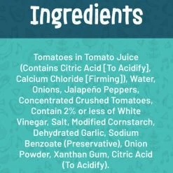 Tomatoes In Tomato Juice (Contains Citric Acid, Calcium Chloride), Water, Onions, Jalapeno Peppers, Concentrated Crushed Tomatoes, Contains 2% Or Less Of White Vinegar, Salt, Modified Cornstarch, Dehydrated Garlic, Sodium Benzoate (Preservative), Onion Powder, Xanthan Gum, Citric Acid.