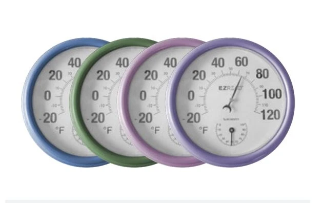 EZ Read™ 8″ dial thermometer/hygrometer in four assorted pastel colors.