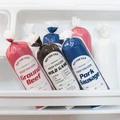 Pack your wild game meat the easy way. Quality opaque, polyethylene bags have a 1 1⁄2″ bottom gusset for added burst protection. The heavy 2 mil thickness guards against freezer burn. When filled and frozen, they stack neatly in the freezer. “NOT FOR SALE” printed on all bags