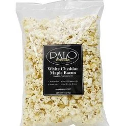 White Cheddar Maple Bacon Are you a fan of salty or sweet? Why not both?!! Made in small, hand-crafted batches using only the highest quality ingredients…pure coconut oil, non-GMO seed, salt, and REAL cheddar cheese…Maple and Bacon flavors over a creamy White Cheddar Cheese base have made this popcorn an instant favorite! |