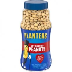 Planters Lightly Salted Dry Roasted Peanuts have irresistible crunchy texture, satisfying taste and are dry roasted without oil. Seasoned with a touch of sea salt, these nuts skimp on sodium but not on flavor, making them a great way to fulfill your salty-snack cravings. The dry roasted lightly salted peanuts deliver 170 calories and 75 mg. of sodium per 1 oz. serving for a craveable heart-healthy treat that’s perfect for eating while on-the-go. Scientific evidence suggests but does not prove that eating 1.5 oz. per day of most nuts as part of a diet low in saturated fat and cholesterol and not resulting in increased calorie intake, may reduce the risk of heart disease. Packed in an airtight jar, these Kosher nuts stay fresh and resist spills thanks to the convenient twist-off lid. Keep this 16 oz. jar of party nuts on hand for sharing with friends, take the bulk nuts along on family road trips, or grab a handful of the peanuts anytime you crave a flavorful, crunchy treat.