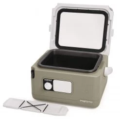 Slow-cook foods and take them on the Road with this Nomad traveling slow cooker. Its rugged, wide-profile “picnic cooler-style” design with cool-touch housing and swing-up handle makes carrying easy and prevents tip-overs when traveling. The locking lid seals tight for spill-proof transportation. Extra-large 8-quart size will hold enough food to feed a crowd. It’s great for soups, stews, casseroles, chicken, roasts and more. A built-in dry erase board with marker is handy for messages. The Nomad is ideal for buffet-style foods at home or away-pulled pork, chicken wings, sloppy joes, hot beef and more. Tenderizes leaner cuts of meat and offers slow-cook settings for high, low, and keep warm. The hinged, removable cover has a large see-through glass window and features a detachable utensil holder with silicone cord that secures a utensil during transport and doubles as a spoon rest when serving. Removable nonstick cooking pot is fully immersible for easy cleaning. Built-in cord storage.