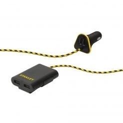 STANLEY Rugged 4-Port Front & Back Seat Car Charger (6 Foot) 9.6A for Rapid Charging Multiple Devices.