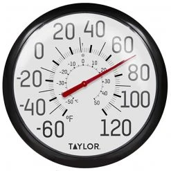 Ideal for gardeners and outdoors enthusiasts alike. An extra-large 13.25-inch display provides at-a-glance readings from far away, while the thermometer’s shatterproof lens is designed to withstand harsh elements without compromising visibility. Its tough, weather-resistant finish resists stains and will not fade. The dial thermometer is lightweight, mounts easily on any flat surface, and fits perfectly into any deck, patio, or garage layout. With both F° and C° scales, you’ll always have the most accurate readings at-hand in any temperature format.