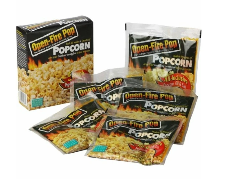 •Pack of 5 outdoor popcorn kits that each include the necessary popping ingredients in a convenient, pre-measured pouch