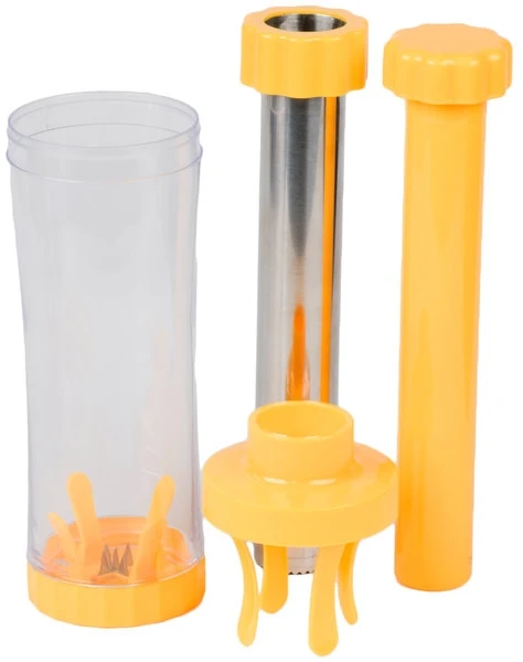 Since this device cuts internally from inside its canister, the juice and kernels from the cob are kept in place and will not not make a mess of your counter. This corn stripper makes consistent cuts and will allow you to quickly process corn for many delicious recipes.